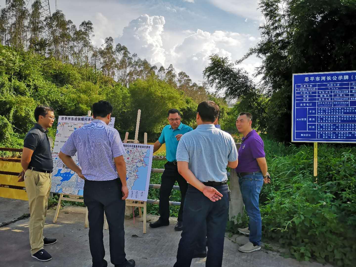 随后,谢超武一行来到石岗村白鳝龙断面,调研蚬冈水的整治情况。他详细了解该河段的水质状况、日常管护、污水处理、两岸植被保护和垃圾处理等情况,并认真听取了东成镇近期落实“五清行动”、农村生活污水处置、禽畜养殖场分布及整治等相关情况。