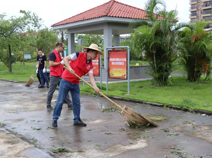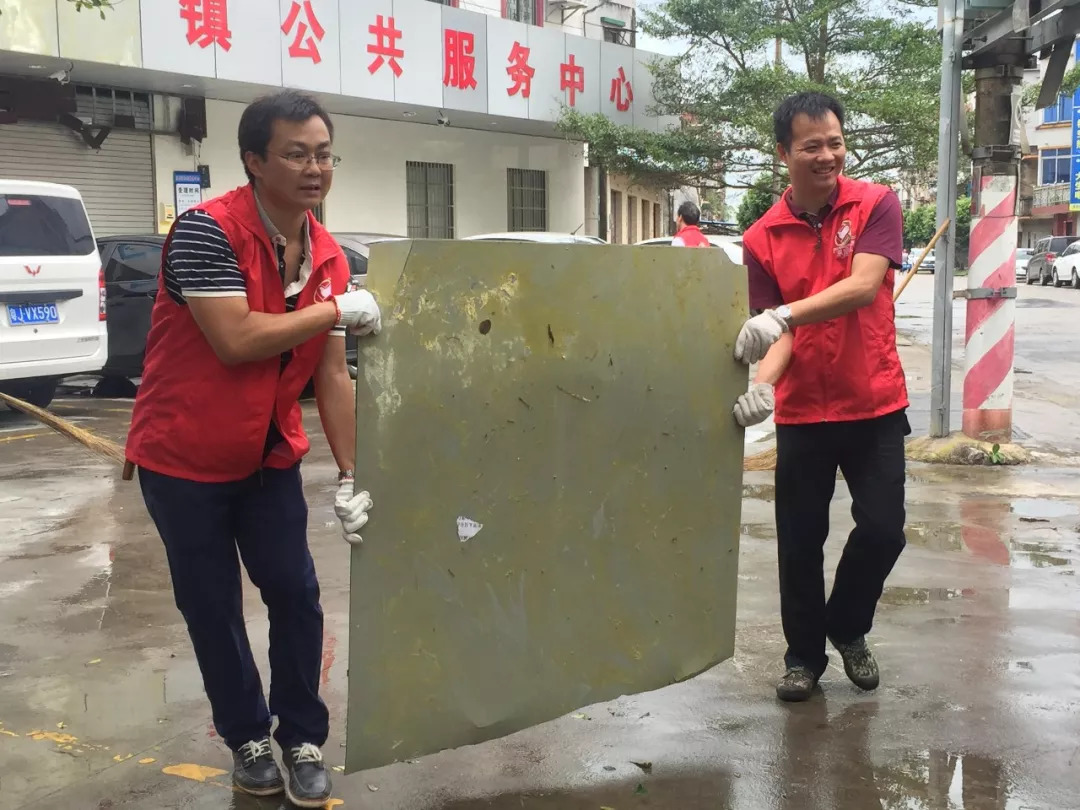党员干部、志愿者认真清理台风“山竹”肆虐后掉落的树枝树叶和杂物,集中起来的垃圾杂物载运完一车又一车,整片“红马甲”干得热火朝天。随着行动开展,附近的居民也纷纷拿起清扫工具加入到清洁行动中,表示要与“红衣战士”一起作战。截止当天下午,在党群合力共同奋战下,东成镇圩镇全部街道基本恢复了往日的干净整洁。