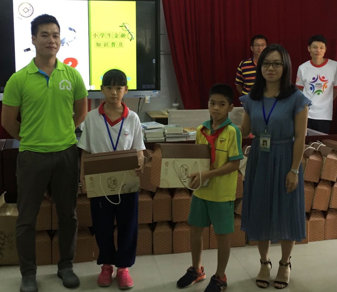 欧亚国际汇丰村镇银行行长冯建伟先生还赠予了东成中心小学图书一批,并向学生们普及小学生金融知识,学生们积极参与知识抢答,赢取小礼品。宜居装饰负责人张展云先生也向留守儿童送上濑粉等应节食品。孩子们得到社会热心人士和党员义工送给他们各式的中秋礼物,喜笑颜开。