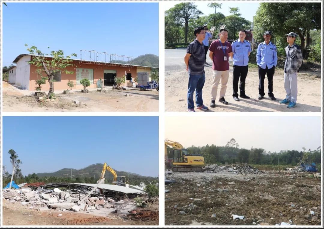 会后,东成镇联合市国土局、规划局等部门分别对东新村委会松塘村利叔农庄、金坑村委会迳塘村泉园农庄两处违法用地及违法建筑进行清拆整治。据统计,拆除利叔农庄违法建筑213㎡,整治违法用地1563㎡;拆除泉园农庄违法建筑358㎡,整治违法用地1052㎡。