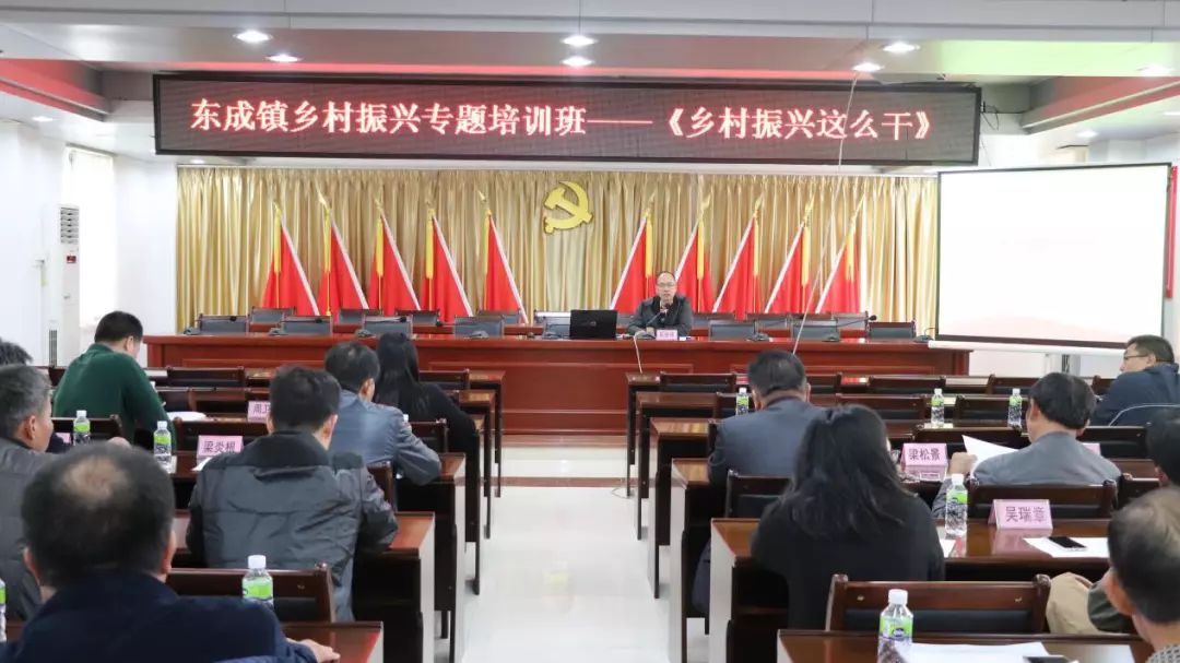 培训班第三课,镇委委员、武装部部长黄奇锋以《乡村振兴这么干》为题,结合东成镇自实施乡村振兴战略以来取得的成效,系统解读乡村振兴战略的基本理论知识和具体工作方法,并就如何深入贯彻乡村振兴战略提出意见:一是消化政策套餐,准确把握中央、省、市关于实施乡村振兴战略的意见和相关配套政策文件的总体要求、任务目标、时间节点以及基本原则;二是练强队伍内功,从加强基层党组织建设入手,健全党组织体系和党员自身能力建设,练好内功,着力提升农村党组织的组织力;三是打好组合拳法,打好人才、资金、动力、项目等方面的“组合拳法”,瞄准目标,精准发力,推动实现乡村产业、人才、文化、生态和组织五个振兴。