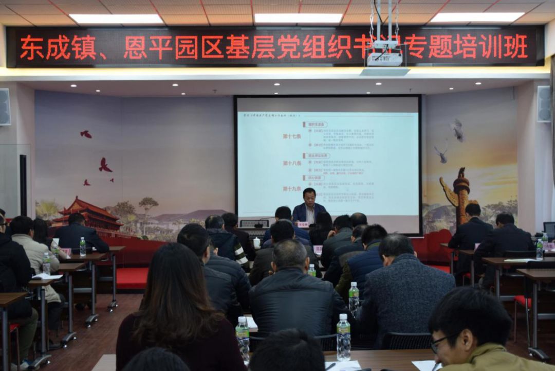 为贯彻落实《广东省加强党的基层组织建设三年行动计划(2018-2020年)》,着力推进基层党组织“头雁”工程,提升基层党组织书记综合能力。1月17日下午,东成镇、欧亚国际园区在泉林党群服务中心举办基层党组织书记专题培训班,副市长,欧亚国际园区党工委书记、管委会主任,东成镇委书记岑安林进行专题授课。东成镇、欧亚国际园区部分班子成员及基层党组织书记共50多人参加。