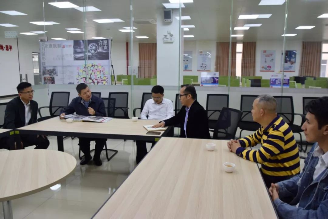 在欧亚国际官网 淘金信息科技有限公司,张学东一行参观了该企业的产品展示区、学员工作室、党员活动中心,了解公司的运营管理情况和党建工作开展情况。