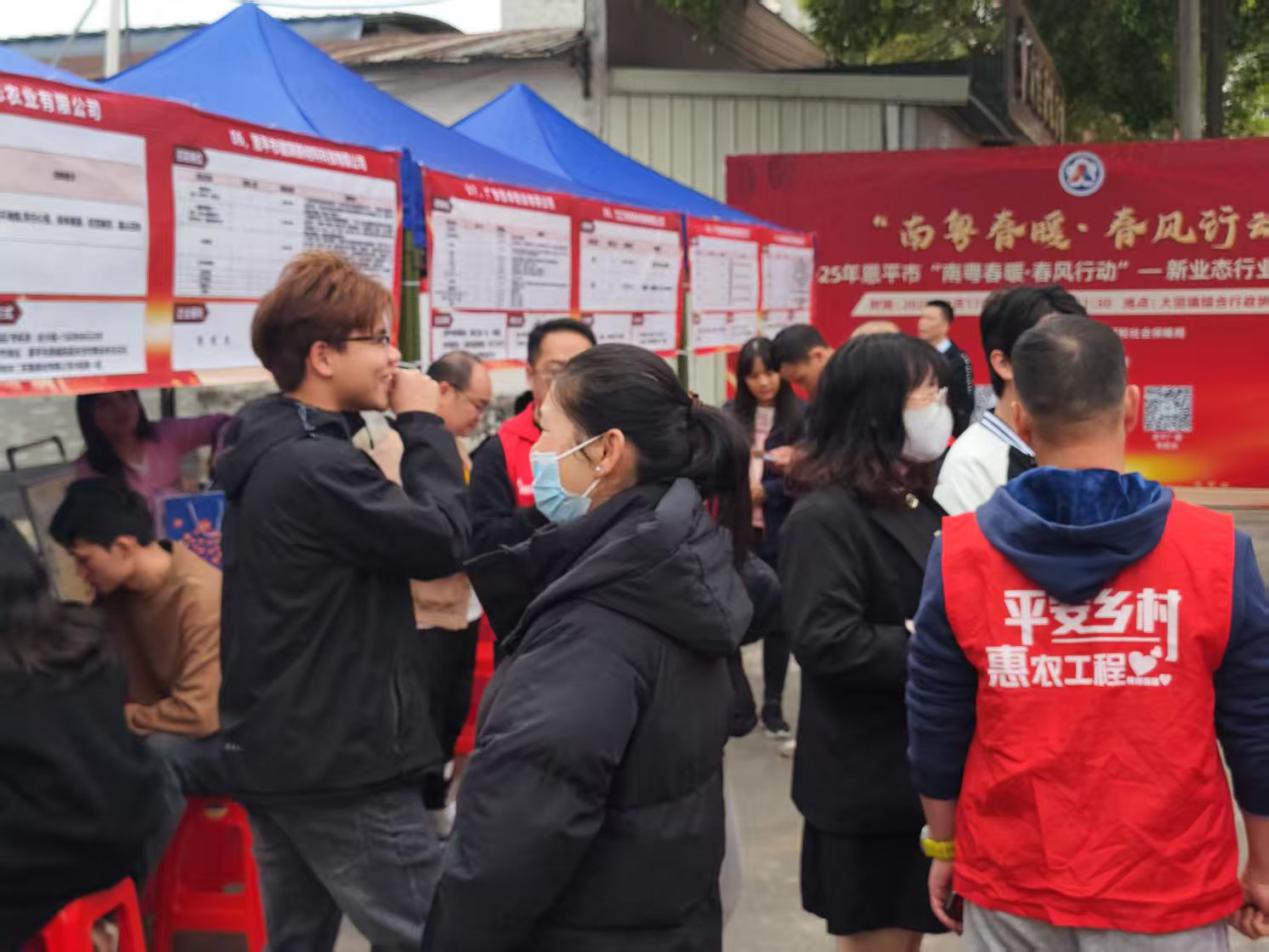 人社局、大田镇政府“南粤春暖·春风行动”——新业态行业专场招聘会在大田镇文化广场成功开幕,现场吸引了众多求职者前来咨询和应聘。