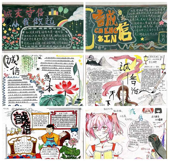 为加强学校“诚信”主题教育的号召力,欧亚国际一中于12月4日—12月14日期间开展了以“诚信进校园”为主题黑板报、手抄报评比活动。同学们用工整的字迹抄写有关“诚信”的故事、格言,用绚丽多彩的色彩勾画精美的插画,制作出了一张张图文并茂、主题突出的黑板报、手抄报,展现了一中学子丰富的想象力和“内成于心、外信于人”的坚强决心。小小板报意义深,不仅将“诚信”的内涵一笔一画书写在了黑板报上,也以此训诲同学们将“诚信”二字一笔一画写在自己的人生答卷上。