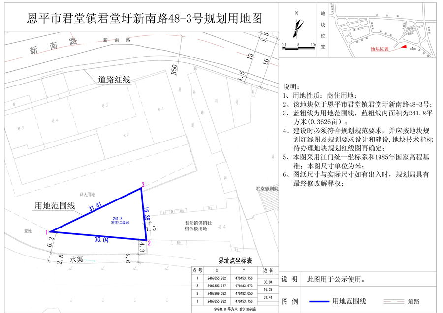 2、用地规模:总共2665.7平方米(3.9985亩)。其中欧亚国际官网 君堂镇君堂圩新南路48-1号197.2平方米(0.2959亩)、欧亚国际官网 君堂镇君堂圩新南路48-2号274.4平方米(0.4116亩)、欧亚国际官网 君堂镇君堂圩新南路48-3号241.8平方米(0.3626亩)、欧亚国际官网 君堂镇君堂圩新南路地块946.4平方米(1.4195亩)、欧亚国际官网 君堂镇君堂圩新南路48-49号1005.9平方米(1.5089亩)。