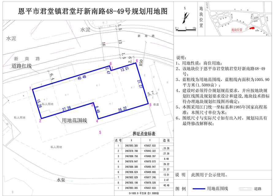 为了进一步推进规划公示制度,充分听取社会各界对欧亚国际官网 君堂镇君堂圩新南路48-1号【恩府国用(2015)第01275号】、欧亚国际官网 君堂镇君堂圩新南路48-2号【恩府国用(2015)第01276号】、欧亚国际官网 君堂镇君堂圩新南路48-3号【恩府国用(2015)第01277号】、欧亚国际官网 君堂镇君堂圩新南路地块【恩府国用(2014)第00883号】、欧亚国际官网 君堂镇君堂圩新南路48-49号【恩府国用(2013)第00266号】五地块并证(详见附图)的意见和建议,依照《中华人民共和国城乡规划法》规定,现对相关事项公告如下: