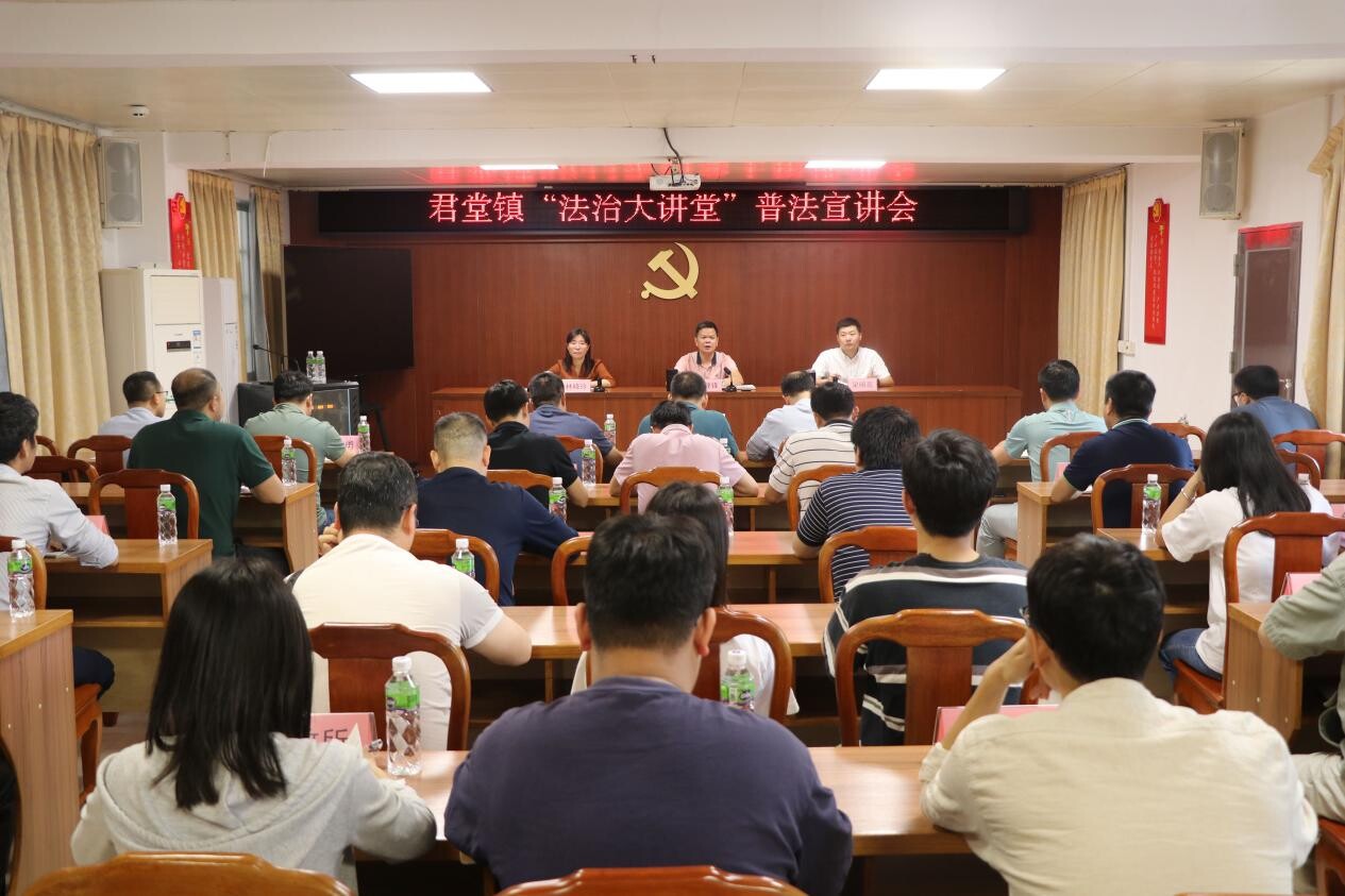 坚持把法治建设摆在突出位置,将法治建设纳入党委会议重要议事日程和党委理论学习中心组学习计划,定期召开专题会议,研究部署法治工作,切实做到与经济社会同部署、同落实、同考核。制定了《君堂镇党委理论学习中心组学法计划》《君堂镇法治大讲堂活动方案》《君堂镇领导干部及公务员学法计划》等学法制度,牢牢抓住这个领导干部“关键少数”,不断健全完善领导干部学法用法机制,营造全员学法浓厚氛围。2023年以来,该镇累计组织干部职工开展集学法宣讲活动16次,全面推动学习贯彻习近平法治思想走深走实。