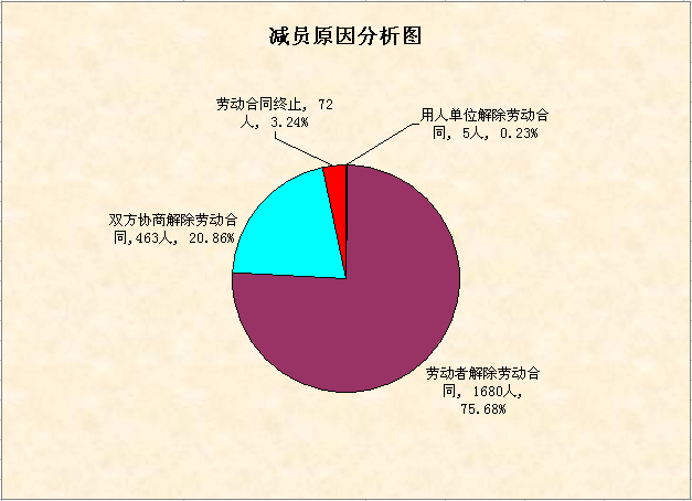 9月末全市监测企业中共有146家企业出现减员情况,共减员2220人。其中用人单位解除劳动合同的占0.23%,劳动者解除劳动合同的占75.68%,双方协商解除劳动合同的占20.86%,劳动合同终止的占3.24%。反映企业减员主要以劳动者单方面解除劳动合同的原因为主。
