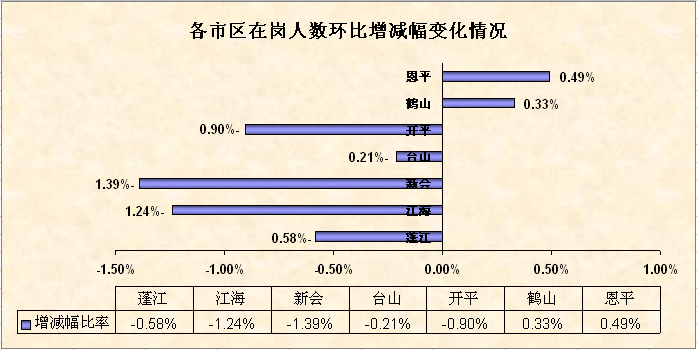 | 市(区) | 上期期末员工 人数 | 调查期末员工 人数 | 增减幅 | 增减幅 比率 |