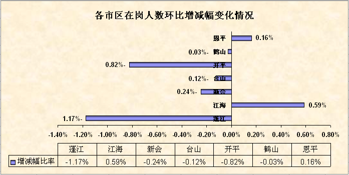 | 市(区) | 上期期末员工 人数 | 调查期末员工 人数 | 增减幅 | 增减幅 比率 |