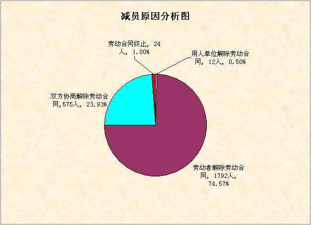 6月末全市监测企业中共有147家企业出现减员情况,共减员2403人。其中用人单位解除劳动合同的占0.5%,劳动者解除劳动合同的占74.57%,双方协商解除劳动合同的占23.93%,劳动合同终止的占1%。反映减员主要以劳动者单方面解除劳动合同的原因为主。