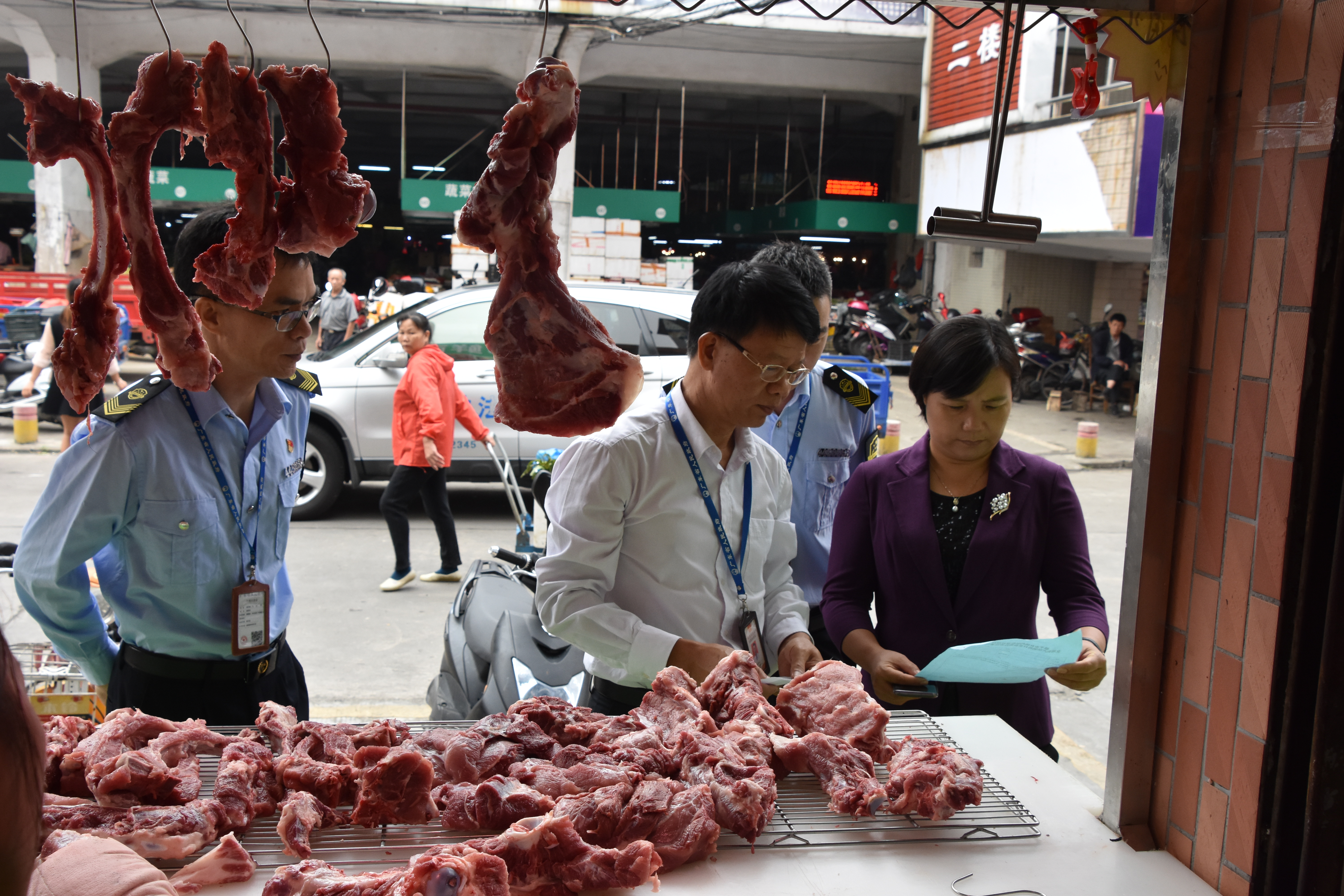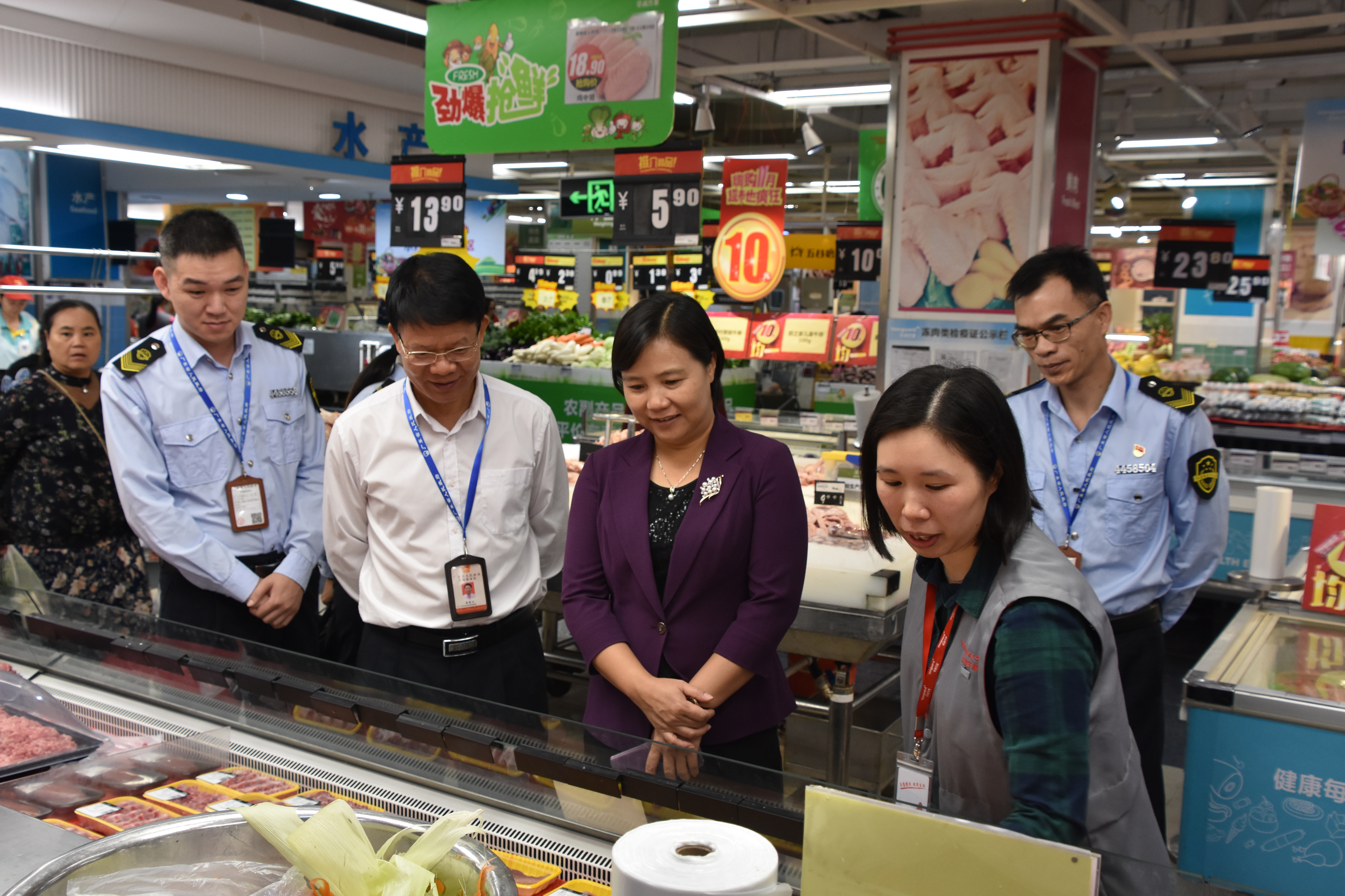 11月20日,为了严格落实非洲猪瘟疫情防控措施,保障欧亚国际官网 内猪肉及猪肉制品的质量安全,按照省、江门市、欧亚国际官网 委市政府以及上级部门关于非洲猪瘟防控工作的要求,市委常委、宣传部长吴永芳带领市食品药品监管局执法人员到市华润万家超市、锦江市场、国金盛宴酒楼等食品经营企业开展非洲猪瘟疫情防控专项检查工作,切实规范猪肉及猪肉制品经营者经营行为,使全市人民群众能够吃上放心肉。市食品药品监管局党组书记、局长梁国光陪同检查。