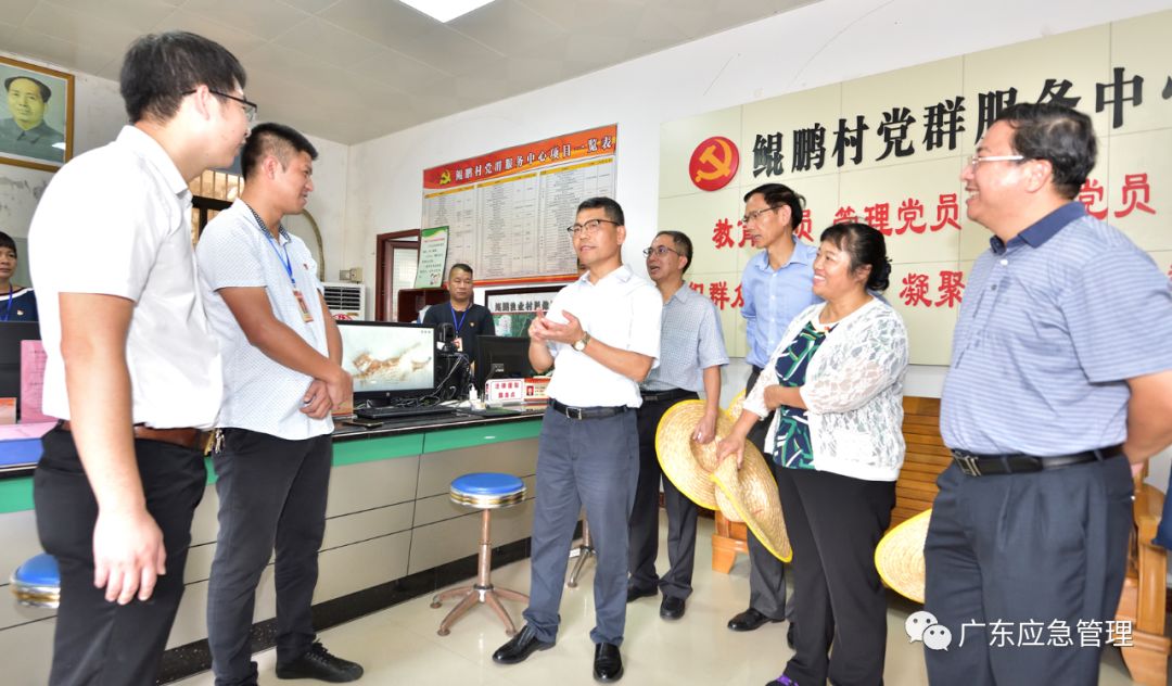 调研组先后来到台山市广海镇鲲鹏村广海渔港、广海湾渔政中队、渔业村委会、赤溪镇实地调研,详细了解当地防汛防风应急管理和渔港基础设施建设特别是渔船回港避险措施,突击检查了镇防汛物资储备、橡皮艇实战操作和村应急广播、渔业管理系统、渔业安全生产责任书等“三防”台账资料,并现场检验了市、镇、村三级应急指挥平台与省应急指挥中心视频调度能力。