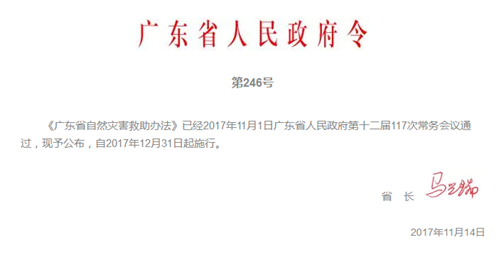 第三十六条 本办法自2017年12月31日起施行。2002年7月26日广东省人民政府公布的《广东省自然灾害救济工作规定》(第77号令)同时废止。