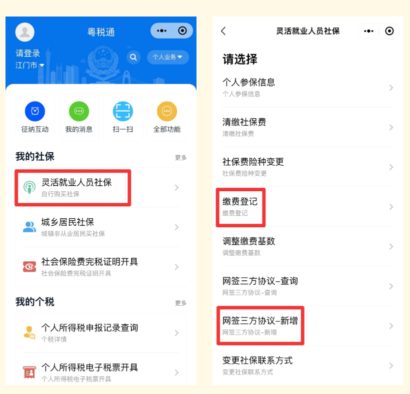 二、进入页面后,点击“灵活就业人员医保”,点击“缴费登记”;