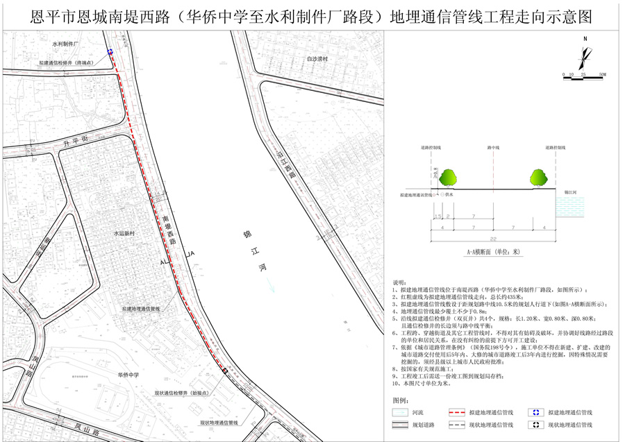 恩城南堤西路(华侨中学至水利制件厂路段)地埋通信管线工程走向的公示