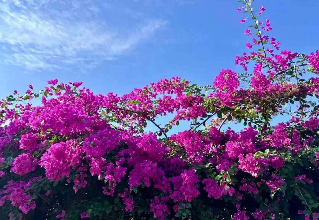 走进横陂镇中心小学的校园,向南望去,一墙繁花宛如燃烧的火焰,在阳光的照耀下格外耀眼。近一点,再凑近一点……你没看错,这满墙的红艳就是盛开在初冬的簕杜鹃。春暖才是开花的时节,簕杜鹃却毫不吝啬地在初冬时节绽放笑颜,为冬天的校园带来一份独特的生机与美丽。