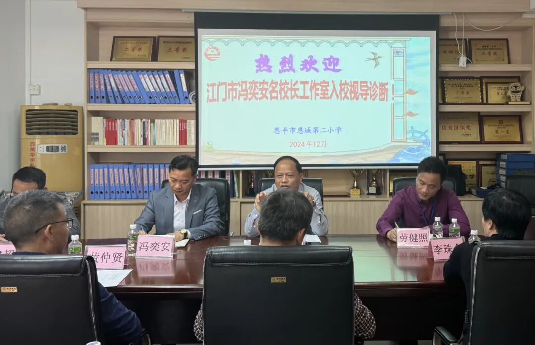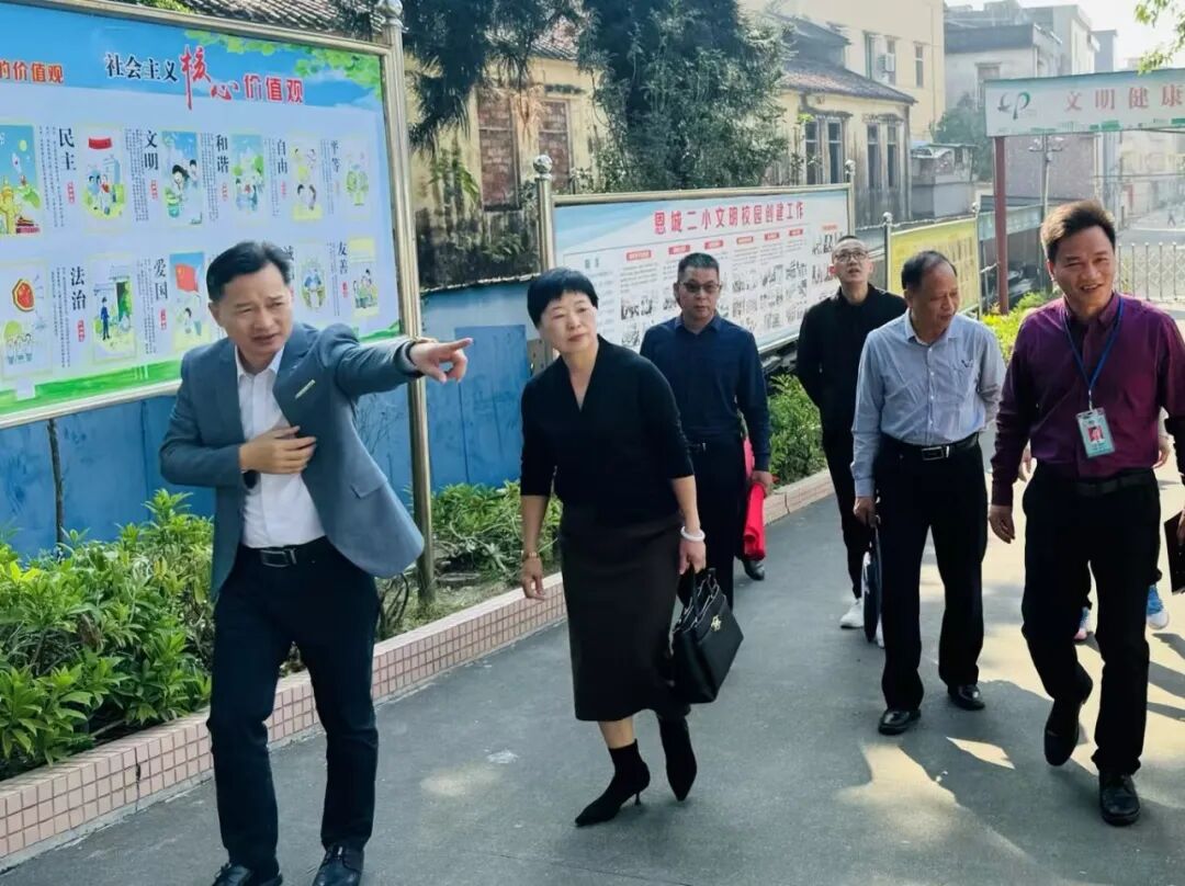 恩城第二小学,开展了一次深入的视导诊断活动。此次活动旨在通过名校长工作室团队的专业视角,为恩城二小的发展提供新思路和策略。  活动初始,江门名校长工作室团队在恩城二小劳健照校长的陪同下,依次参观了教学楼、运动场、图书馆、禁毒公园及展览室等,对学校的整体环境设施和文化氛围给予了高度评价。