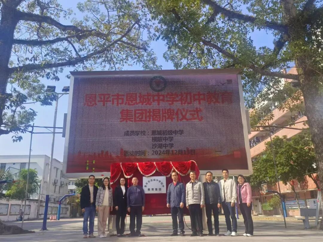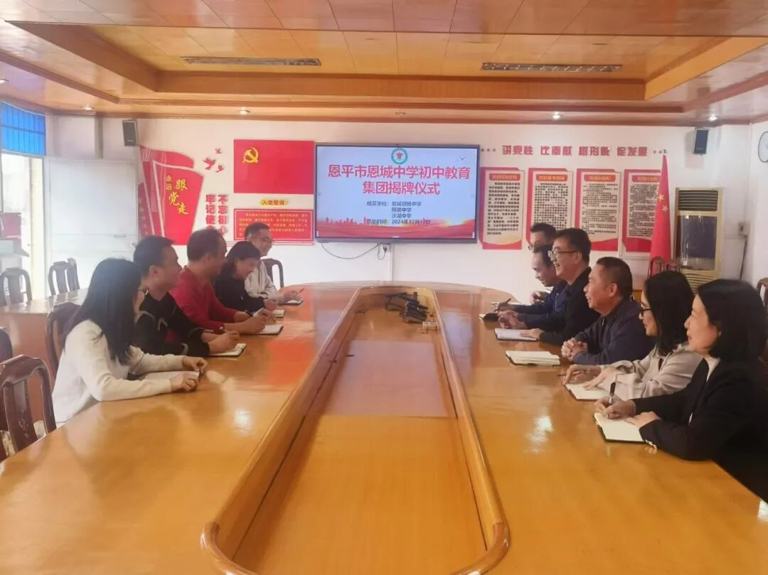 在热烈的掌声中,与会领导共同为恩城中学初中教育集团揭牌。这一瞬间,标志着教育集团将携手各成员学校,共同开启教育改革与发展的新篇章。