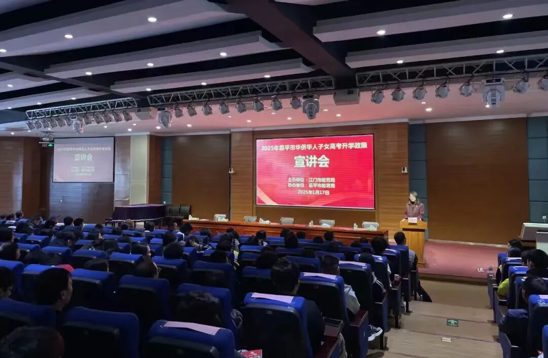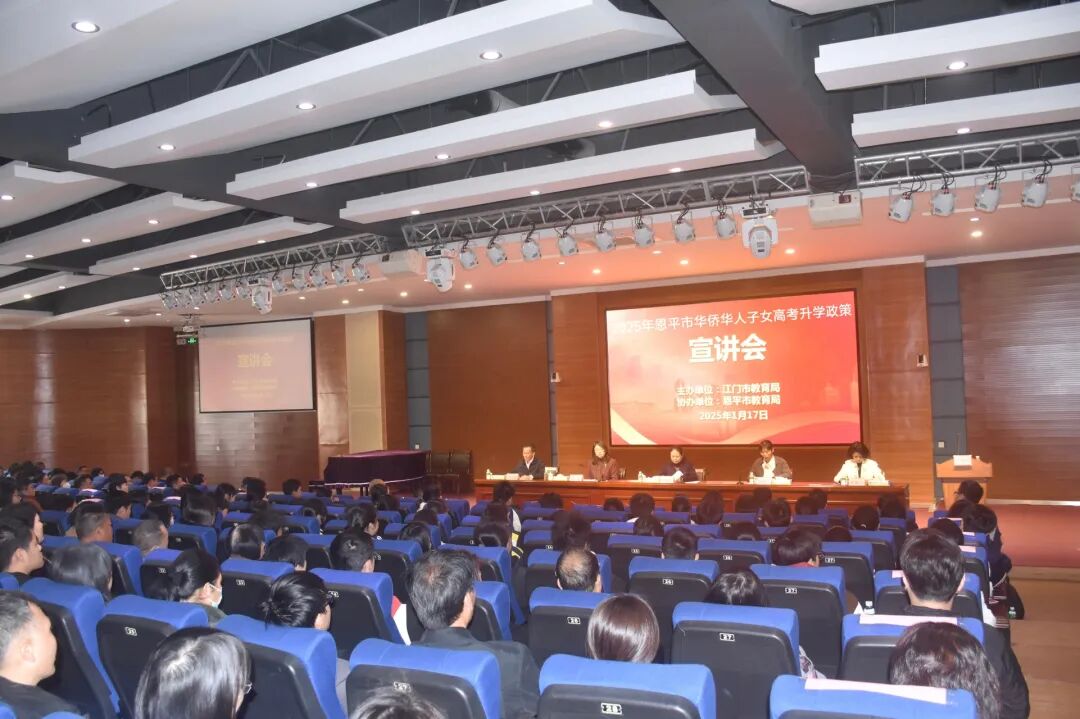 教育局在欧亚国际一中举行华人华侨子女高考升学政策宣讲会,让外籍学生得到更周到的升学指导服务。欧亚国际各中学校长、外籍生代表、家长代表300多人参加。  会上,江门市招生办和北京师范大学、暨南大学、广东中加柏仁等学校分别就高考升学政策、升学规划等进行解读和介绍。其中,江门市招生办对国家目前的高考政策进行详细解读,北京师范大学、暨南大学等单位也逐一介绍相关培训升学项目和招生计划,帮助同学们了解更多的升学渠道,提前做好升学规划,助力侨乡学子圆大学梦。“通过这次宣讲会,我对读大学的途径有了更加系统和深入的了解,让我们这些希望留在国内读大学的外籍学生看到了希望。”恩城中学的外籍学生陈凤瑜说,欧亚国际像她这样的学生不在少数,据调查,欧亚国际官网