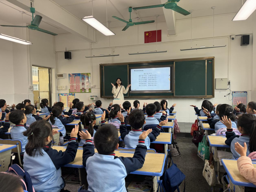 随后,全体学生齐声唱响《诚信拍手歌》。“你拍一,我拍一,别人玩具不乱拿……”清脆响亮的歌声伴随着欢快有力的拍手节奏,在校园上空久久回荡。学生们精神抖擞,脸上洋溢着纯真笑容,用充满朝气的歌声传递着对诚信的坚定信念。紧接着,诵读诚信歌谣环节将活动推向高潮。各班学生以饱满的热情、富有感染力的语调,诵读着一首首精心创作的诚信歌谣,或激昂奋进,或娓娓道来,将诚信的真谛融入每一句诗词之中。